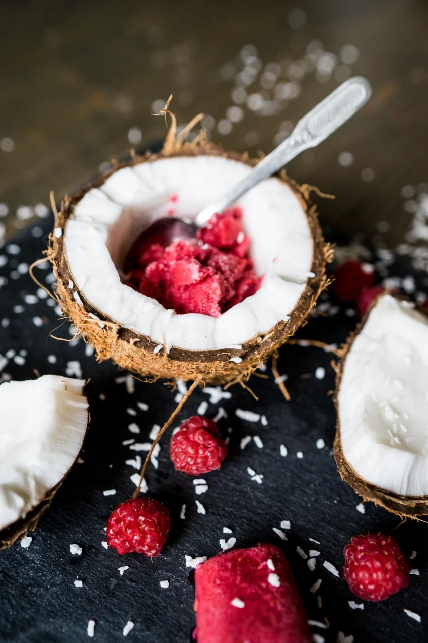 VAJADZĪGS130 g saldētas avenes vai citas ogas90 g 0,5 % biezpiena1 banānslaima miziņasvaigas mellenes vai zemenes